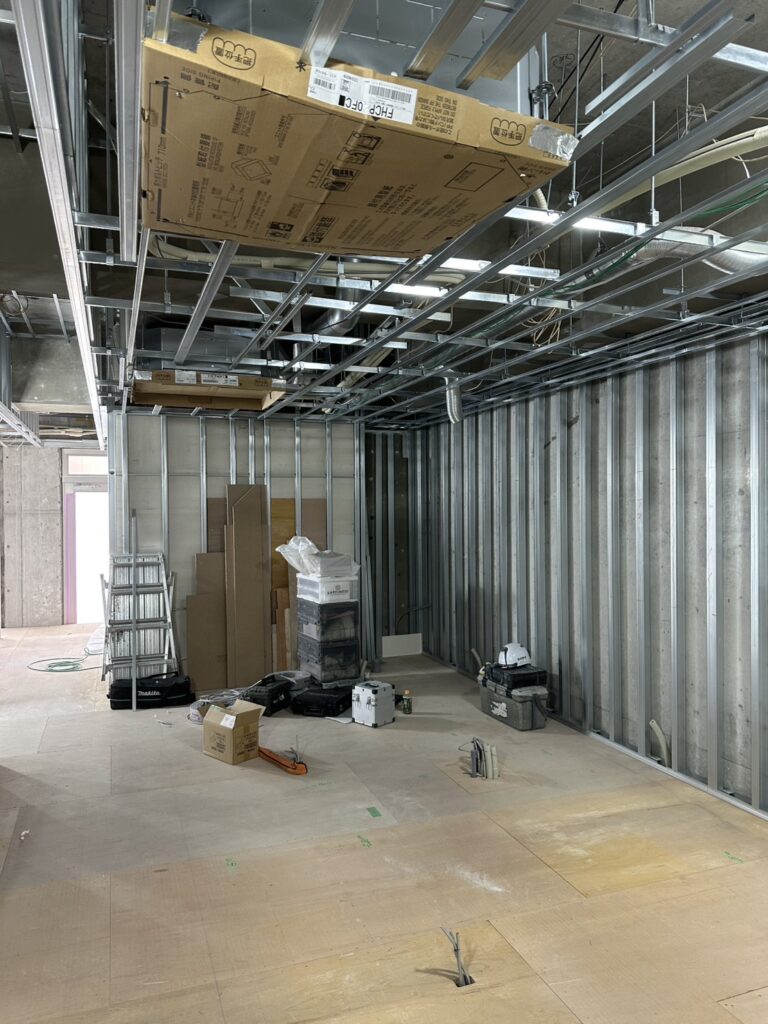 さらに、軽天工事だけでなく、その後のボード工事やGL工事、クロス張替えまで一貫して対応できることも当社の強みです。