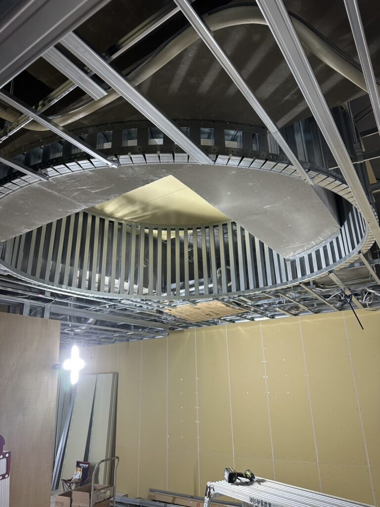 軽量鉄骨は曲げ加工が容易であるため、このような曲線的な造形にも柔軟に対応できます。
