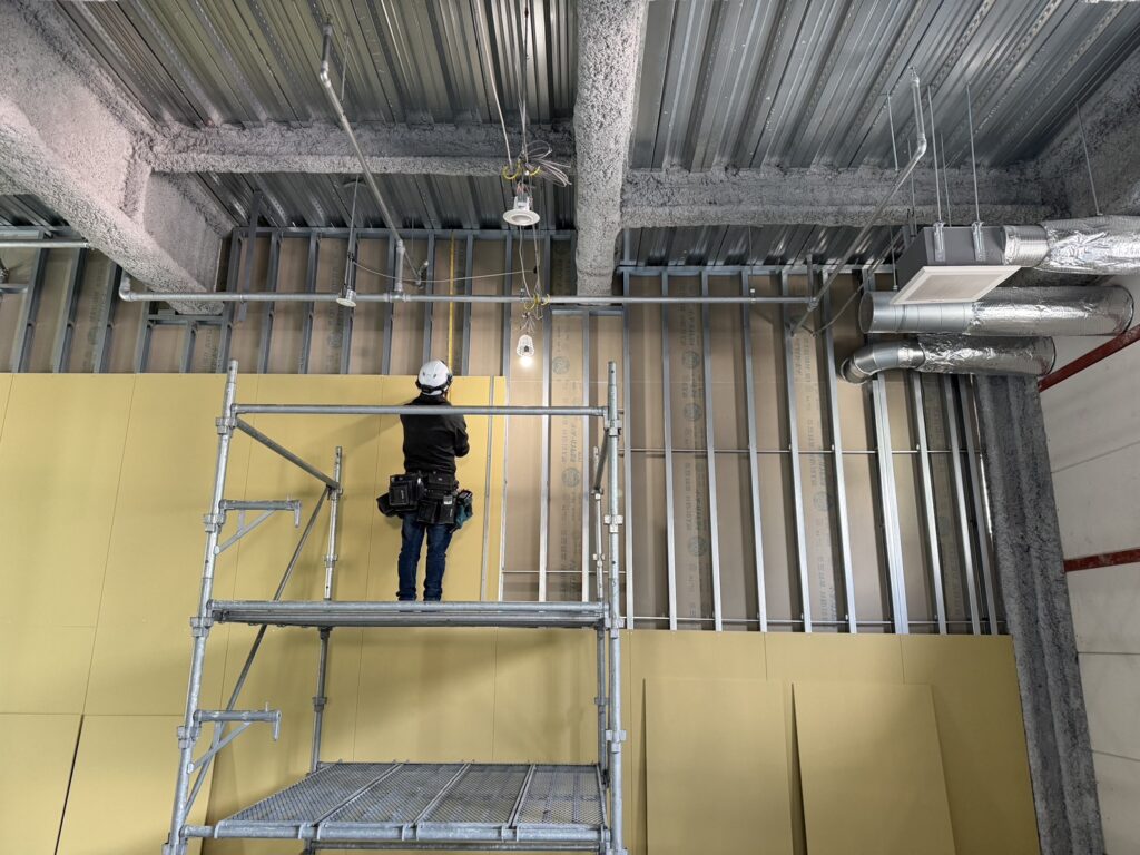 間仕切り壁の上部には、既存の設備配管やダクトとの干渉を避けるため、慎重な墨出しと施工計画が必要です。